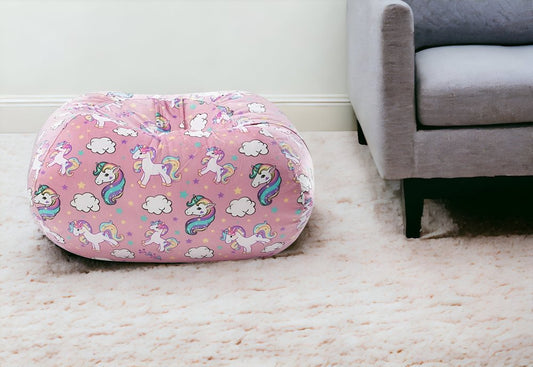 26" Pink and White Microfiber Unicorn Pouf Cover