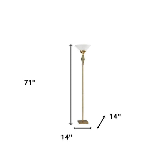 71" Brass Light Changing Torchiere Floor Lamp With White Fabric Cone Shade