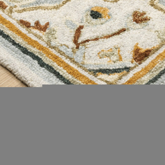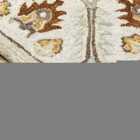 5' X 8' Ivory Beige Gold And Muted Grey Oriental Tufted Handmade Stain Resistant Area Rug