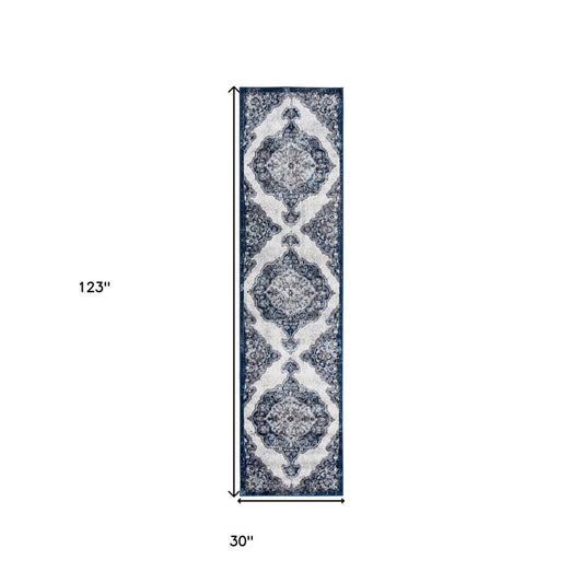 2' X 3' Ivory Gray And Blue Medallion Area Rug