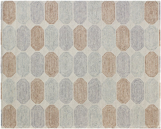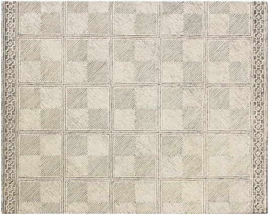 5' X 8' Ivory and Silver Wool Abstract Geometric Hand Tufted Non Skid Area Rug