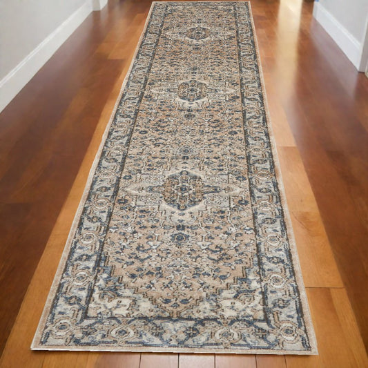 10' Gray and Ivory Medallion Power Loom Runner Rug