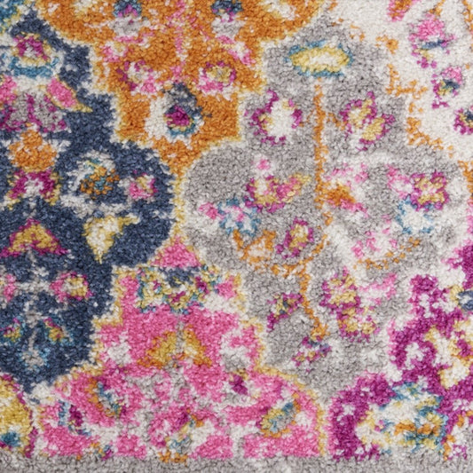 10' Gray and Ivory Medallion Power Loom Runner Rug