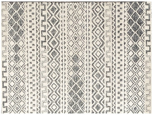 5' X 8' Black and Ivory Wool Abstract Geometric Hand Tufted Non Skid Area Rug