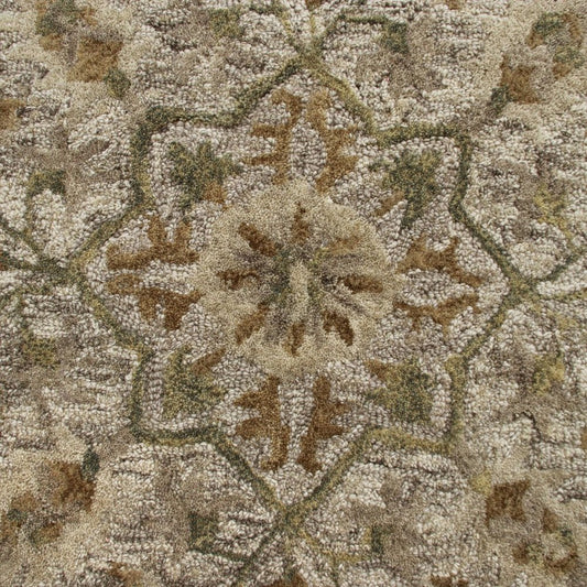3' X 5' Taupe Red And Gray Floral Hand Tufted Area Rug