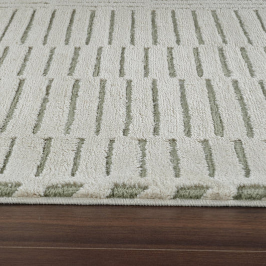 7' X 10' Cream and Green Abstract Distressed Area Rug