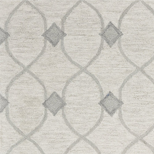 3' X 5' Ivory And Gray Wool Ogee Hand Tufted Area Rug