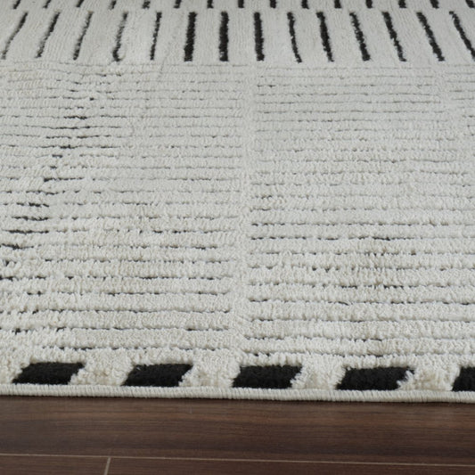 8' X 11' Cream and Black Abstract Distressed Area Rug