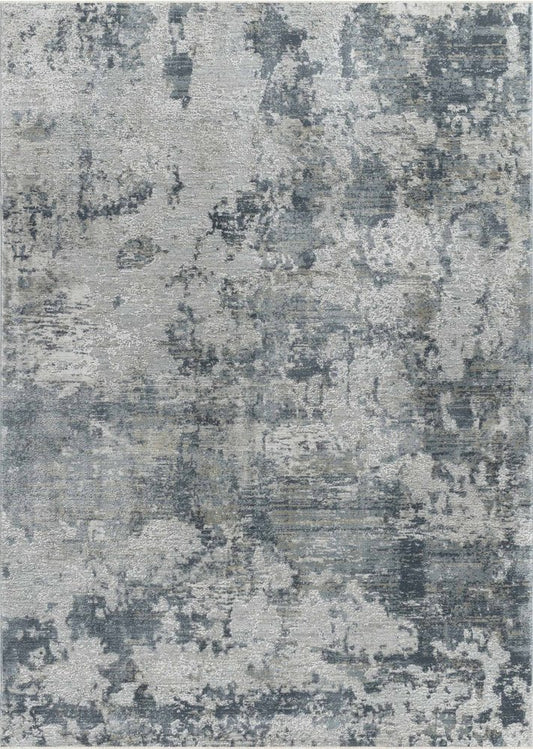 5' X 7' Dark Blue Light Blue Grey Ivory And Beige Abstract Power Loom Stain Resistant Area Rug