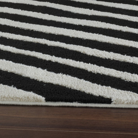 2' X 5' Black And White Modern Stripe Printed Vinyl Area Rug with UV Protection