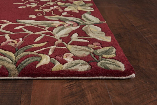 9' X 13' Red Brown And Ivory Wool Floral Hand Tufted Area Rug