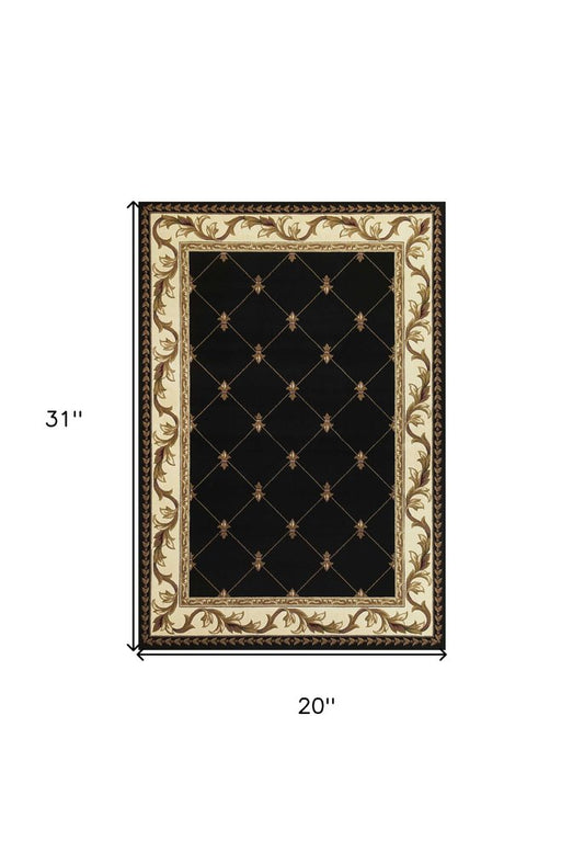 2' X 3' Brown Black And Ivory Floral Vines Area Rug