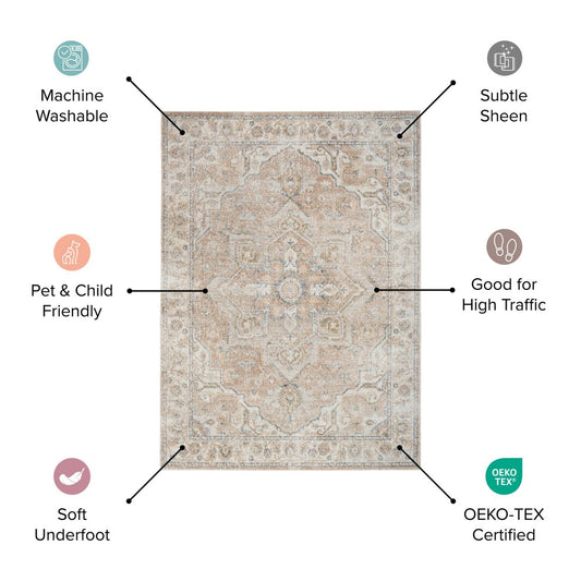 8' X 10' Silver Oriental Power Loom Washable Area Rug