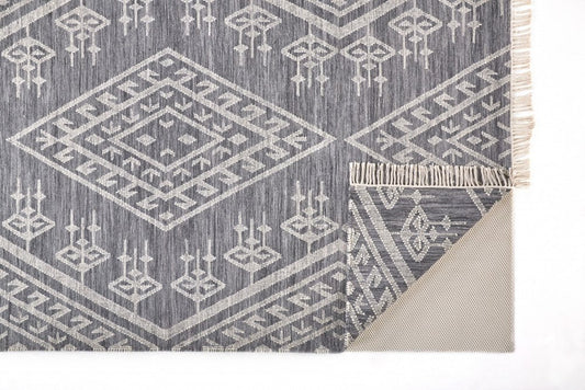 Regular price From $776.99 USDRegular priceUnit price perSale price From $776.99 USD10' X 14' Gray Ivory And Blue Wool Geometric Dhurrie Flatweave Handmade Area Rug With Fringe
