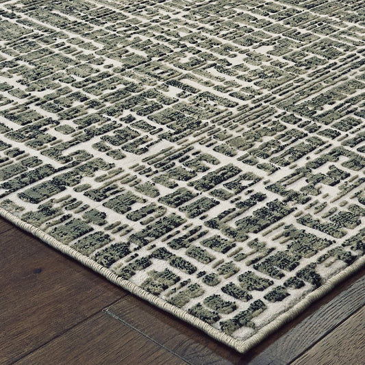2' X 8' Grey And Ivory Abstract Power Loom Stain Resistant Runner Rug