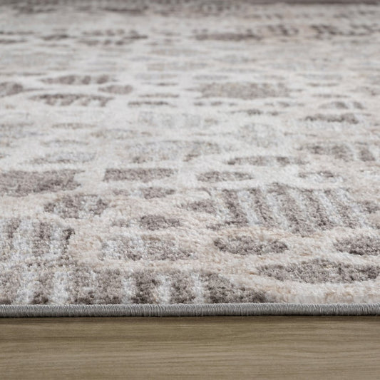 5' X 8' Grey And Ivory Geometric Power Loom Stain Resistant Area Rug