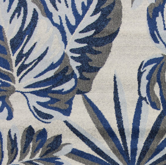 3' X 5' Blue and Gray Botanical Leaves Area Rug