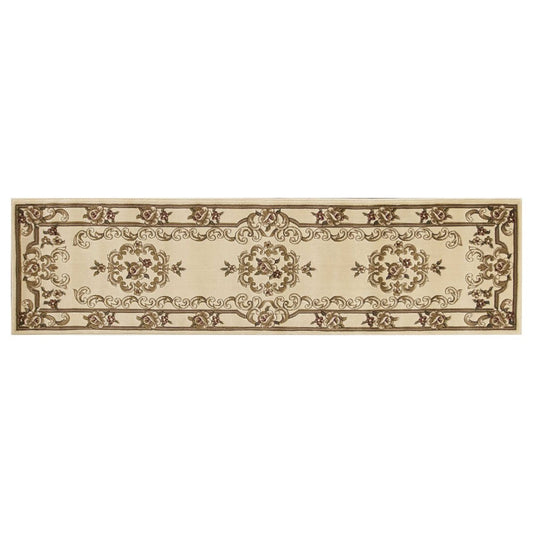 8' Beige Ivory And Brown Floral Medallion Runner Rug