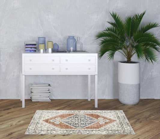 9' X 12' Orange and Ivory Medallion Area Rug