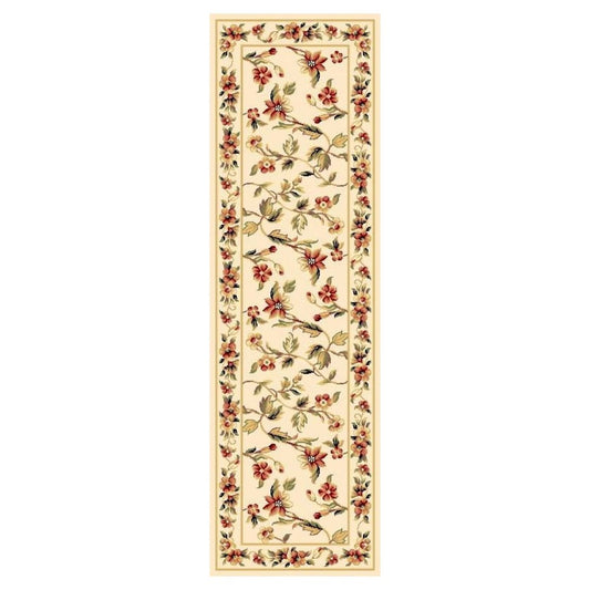 3' X 5' Ivory Green And Red Floral Vines Area Rug