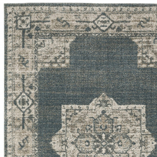 7' X 10' Blue and Beige Oriental Power Loom Area Rug