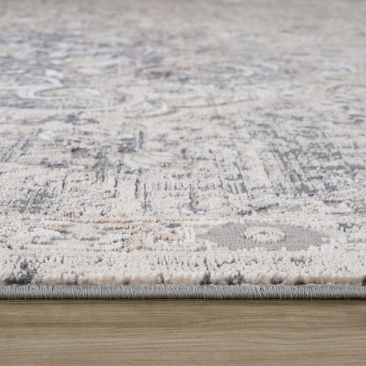 8' X 11' Gray and Beige Oriental Distressed Area Rug