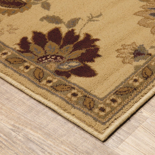 10' X 13' Ivory Green Brown Blue And Rust Floral Power Loom Stain Resistant Area Rug