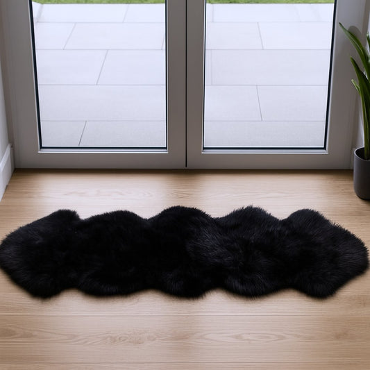 6' Black Genuine Sheepskin Animal Print Shag Area Rug