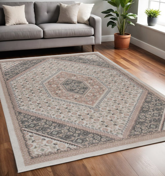 8' X 10' Gray and Soft Pink Traditional Area Rug