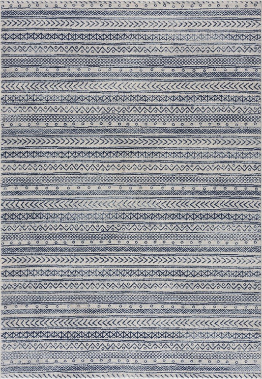 2' X 4' Navy Blue Decorative Stripes Area Rug