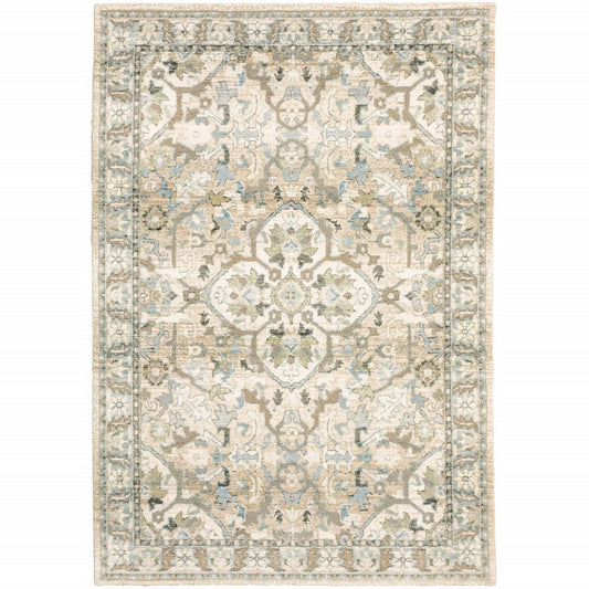 8' X 10' Ivory And Slate Gray Medallion Area Rug