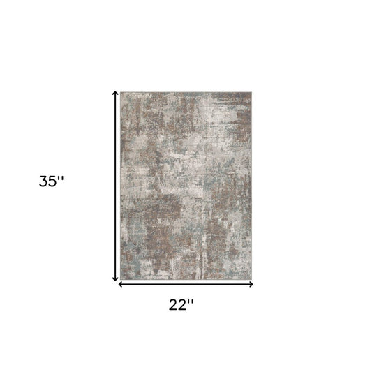 3' X 5' Gray and Beige Abstract Non Skid Area Rug