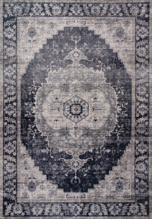 6' X 8' Gray and Black Medallion Non Skid Area Rug