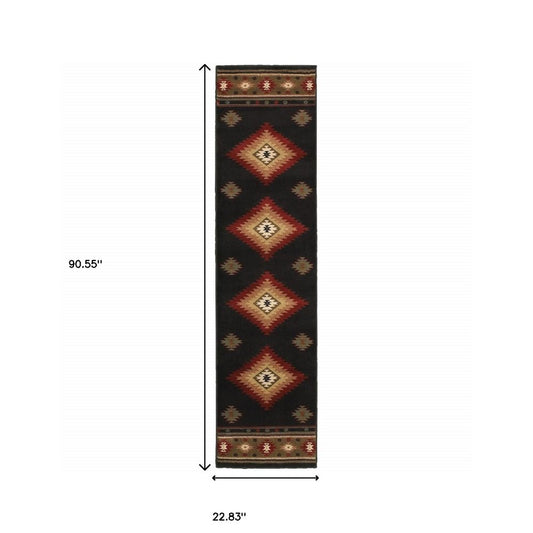 8' Black Round Southwestern Power Loom Stain Resistant Area Rug