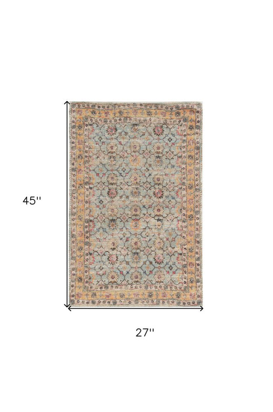 5' X 7' Gray Ivory and Blue Floral Power Loom Distressed Washable Area Rug