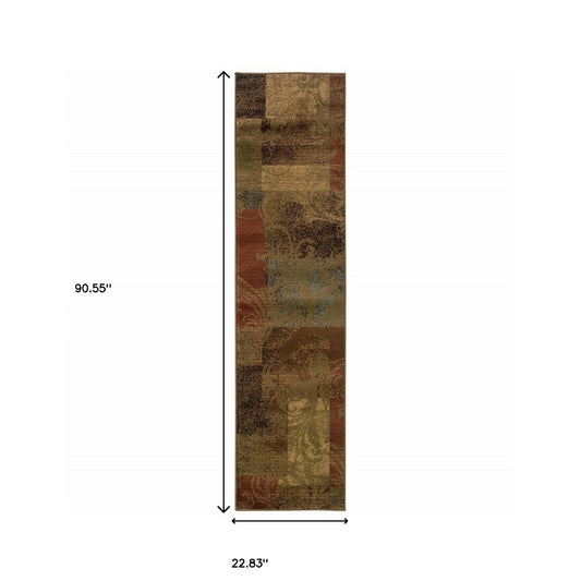 2' X 8' Green Geometric Power Loom Stain Resistant Runner Rug