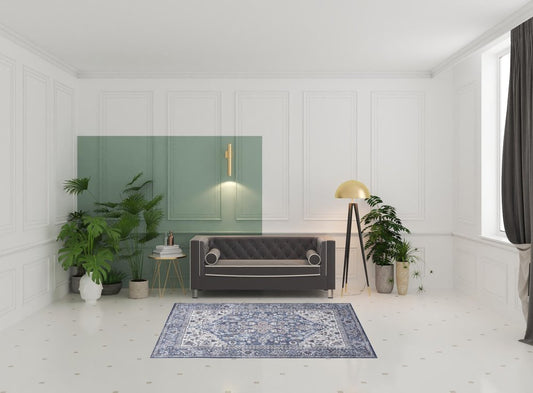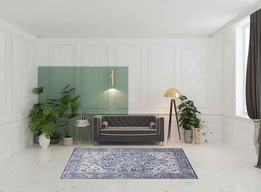 5' X 7' Blue and Beige Oriental Power Loom Area Rug