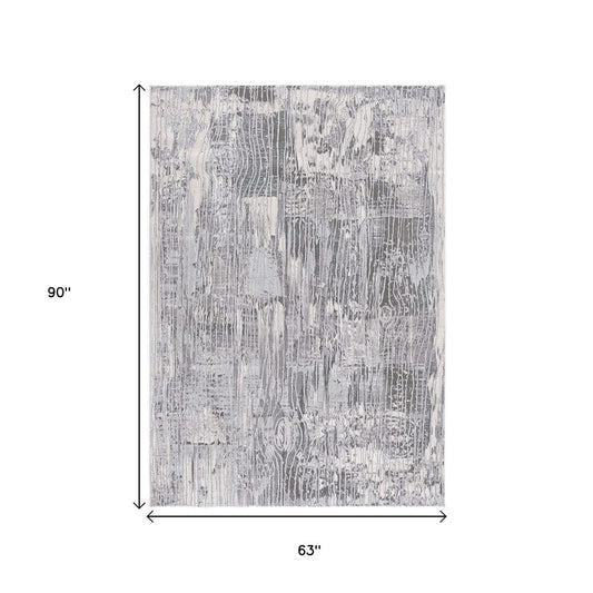 5' X 8' Beige and Gray Abstract Power Loom Distressed Non Skid Area Rug