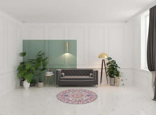 8' Gray Round Floral Power Loom Area Rug