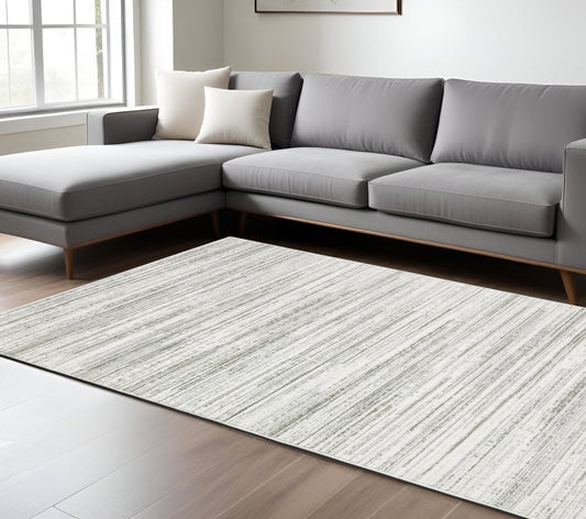 5' X 8' White And Grey Abstract Power Loom Stain Resistant Area Rug