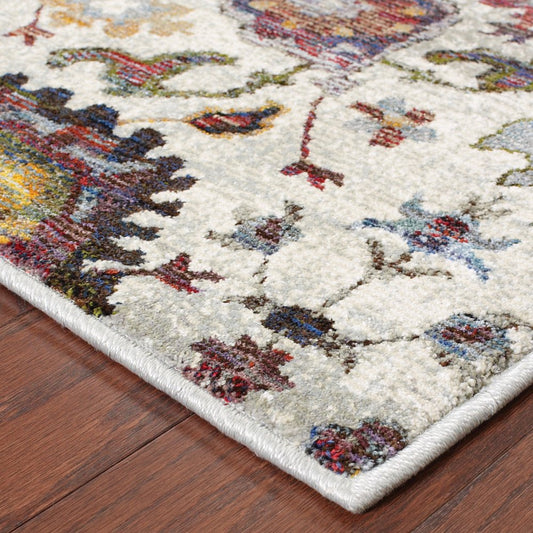 10' X 13' Ivory And Gray Pale Medallion Area Rug