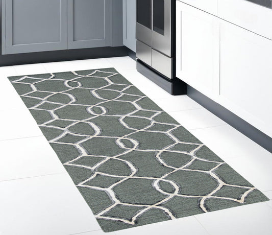 8' Gray Wool Geometric Hand Tufted Runner Rug