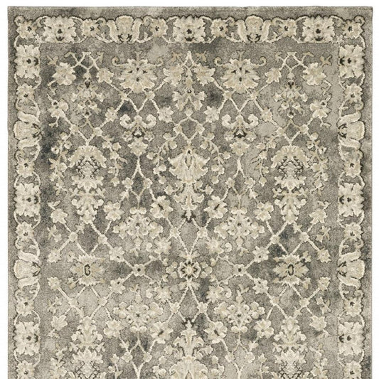 5' X 8' Grey Ivory And Brown Oriental Power Loom Stain Resistant Area Rug