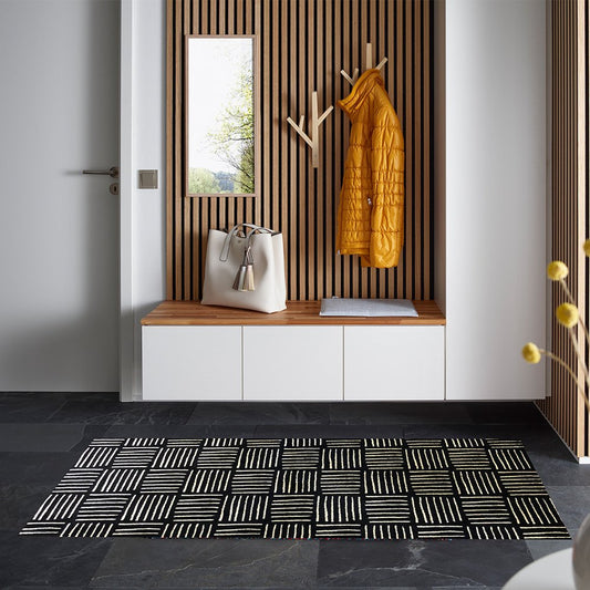2' X 4' Black and Off White Abstract Machine Tufted Washable Area Rug With UV Protection