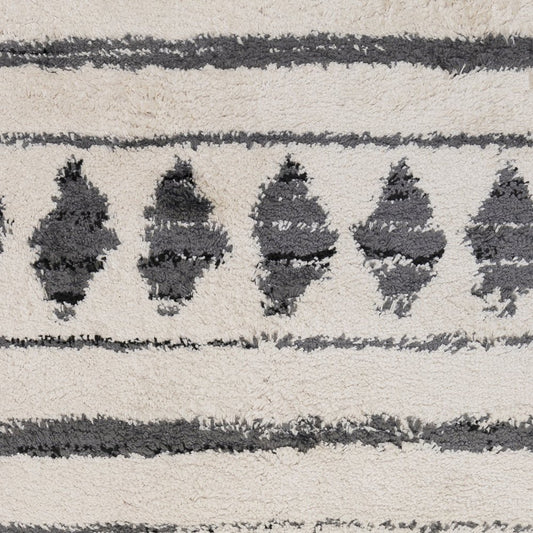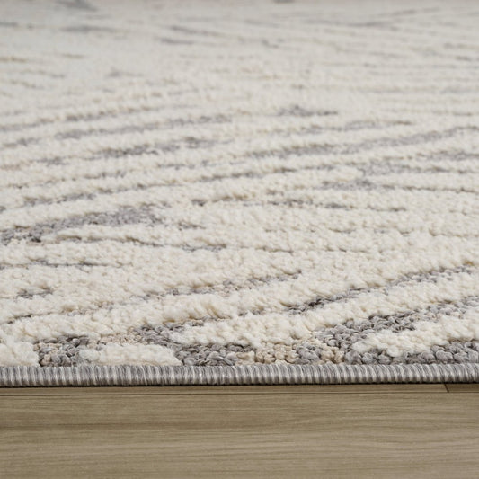 5' X 8' Grey And Ivory Geometric Shag Power Loom Stain Resistant Area Rug
