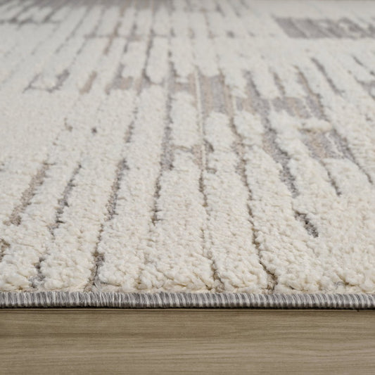 6' X 9' Grey And Ivory Geometric Shag Power Loom Stain Resistant Area Rug