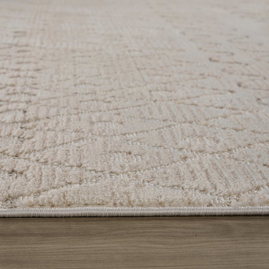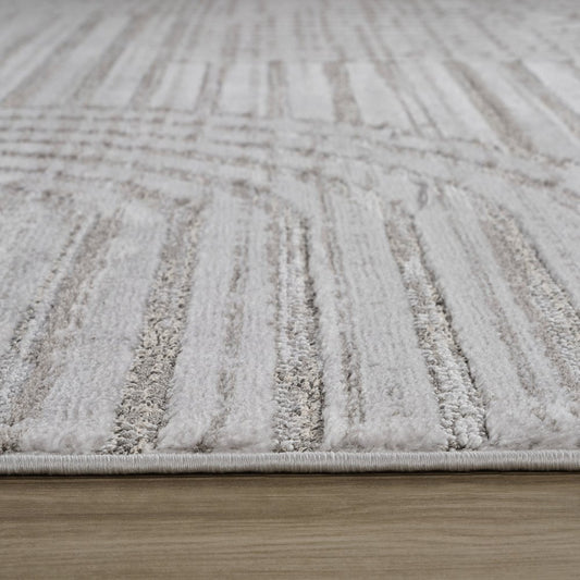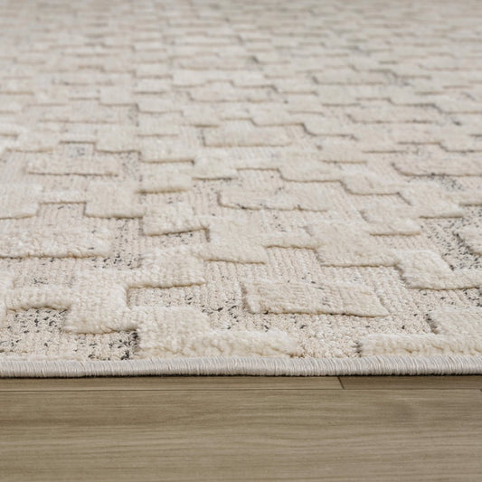 2' X 5' Gray and Beige Geometric Distressed Area Rug