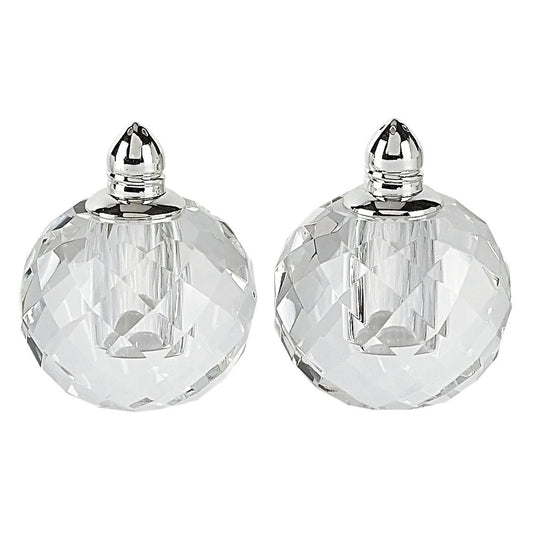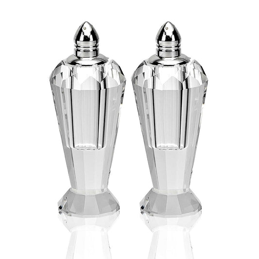 Set of Two Clear And Silver Crystal Geometric Pepper Shakers