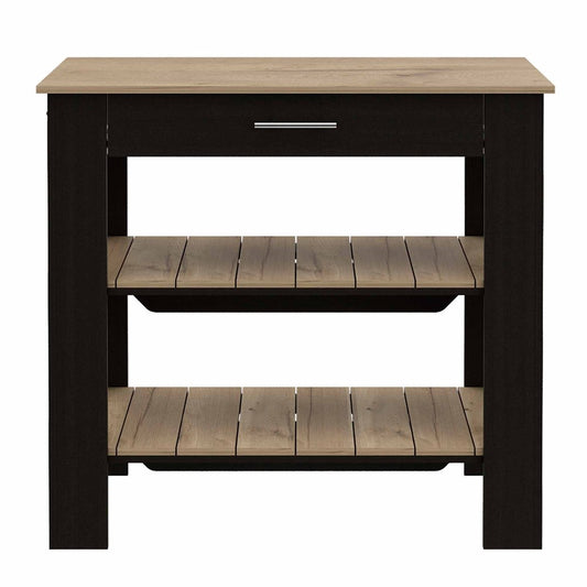 41" Dark Brown and White Wood Kitchen Island Set With Storage