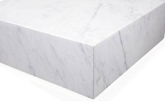 35" White Genuine Marble And Brass Square Coffee Table
